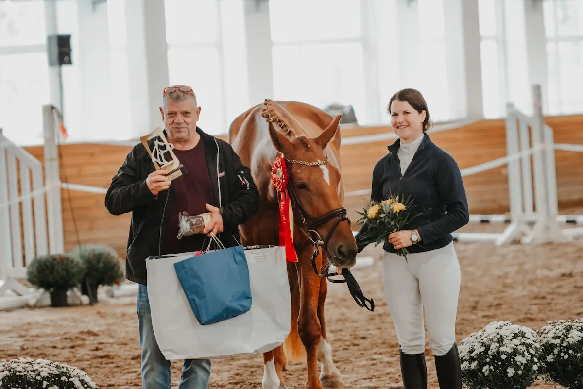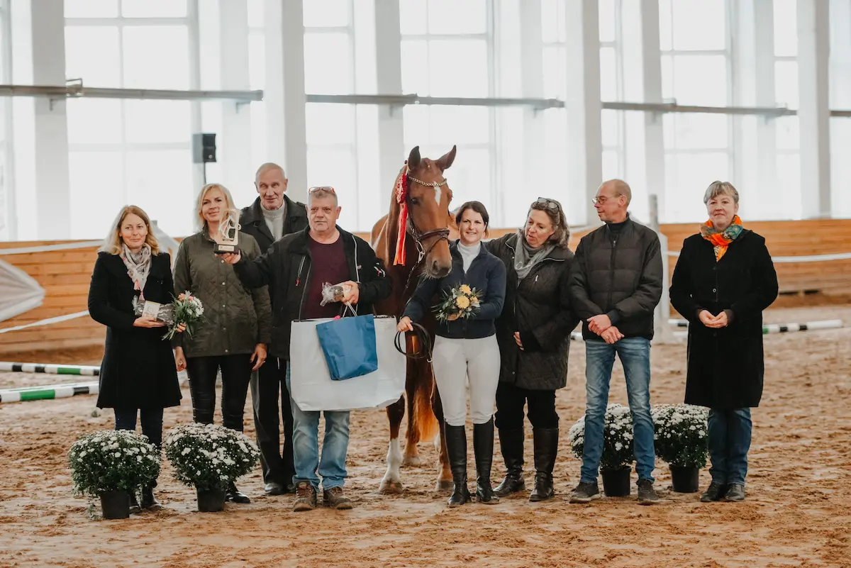 2021.gadā Aura piedalījās jaunzirgu skatē “Rudens Pērle”. Starp desmit labākajām jau iepriekš atlasītajām ķēvēm Latvijas repubikā Aura izcīnīja trešo vietu, parādot precīzu lēciena tehniku, spēcīgu atspērienu un elastīgas plašas gaitas. Aura tika atzīta kā tipisks moderna sporta tipa zirgs ar potensiālu kā konkūrā, tā arī iejādē. Aura ir nākusi no ģimenes atzara, kas Kalējos pastāv jau četrās paaudzēs. Auras vecvecmāte Afēra, bija viena no pirmajām saimniecības ķēvēm, kas deva daudzus kumeļus, no kuriem Auras vecmāte Glory un māte Labella turpināja savas izcelsmes līniju saimniecībā. Rezultātā tika iegūti sporta tipa zirgi ar ļoti labu gaitu kvalitāti un labu lēciena tehniku.